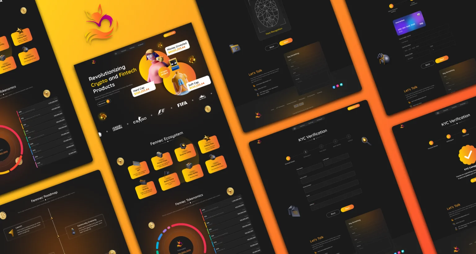 The core challenge was to simplify highly technical blockchain concepts into accessible, engaging visual elements (like the Fennec Ecosystem flowchart and Tokenomics charts). The design had to instill a high degree of user confidence necessary for KYC verification and digital asset management.